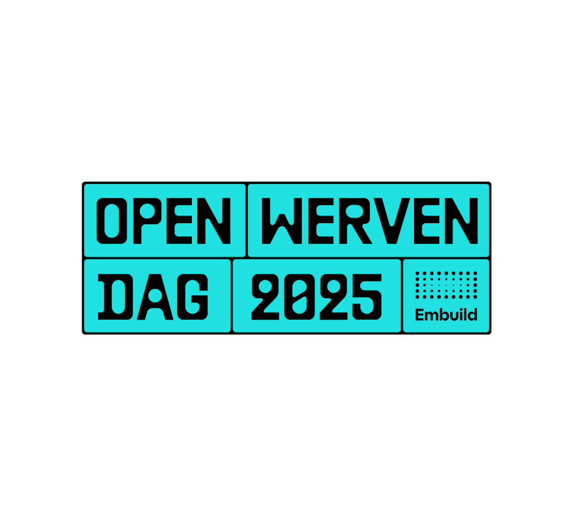 Open Wervendag legt door het kleurgebruik een link met organisator Embuild, en voegt met de grafische vormgeving een frivole noot toe.